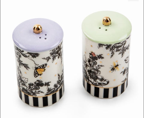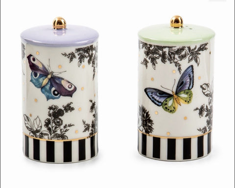 Butterfly Toile Salt & Pepper SetCondition: New in Box We’re aflutter for this salt and pepper set, featuring a pattern of butterfly toile, trimmed with stripes and gold lustre.Dimensions: Each: 2"...
