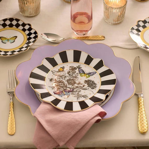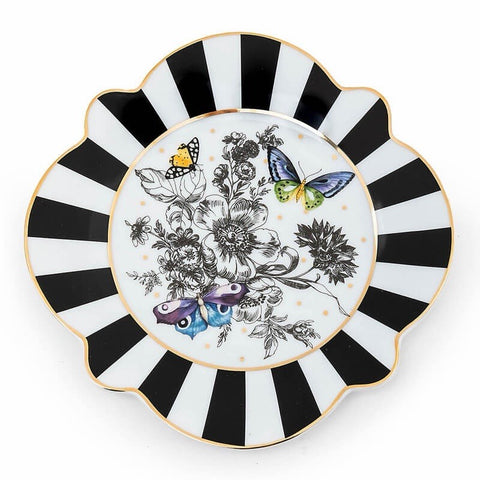 The Mackenzie Childs Toile Butterfly salad plate is an 8-1/5" ceramic plate featuring a colorful butterfly pattern, perfect for adding a touch of whimsy to your table setting. Made with...