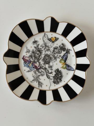 MacKenzie-Childs Butterfly Toile Salad Plate Scalloped Edge 8” Diameter New