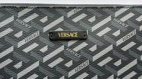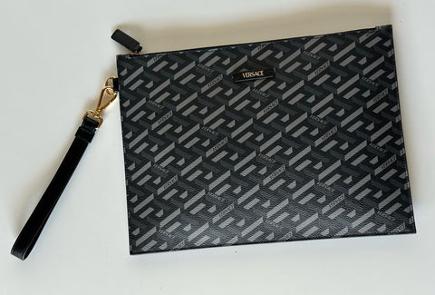Versace Greca Coated Canvas Large Pouch Clutch Black/Gray 1010525 IT NWT