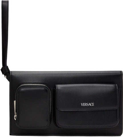 Versace Calf Leather Trifold Document Case Clutch Black 1014444 Italy NWT