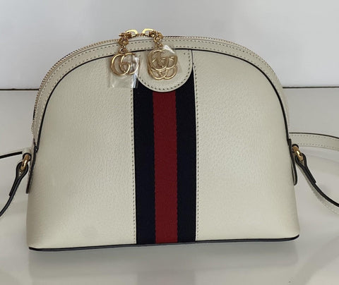 Gucci Ophidia Leather GG Web White Small Shoulder Bag Made in Italy 719881 NWOT