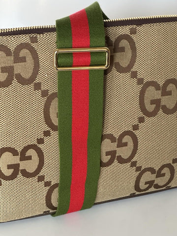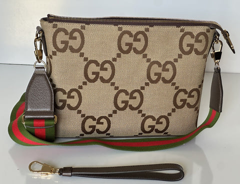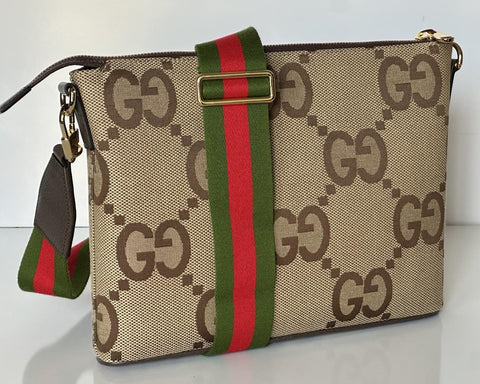 Gucci Jumbo GG Canvas/Leather Shoulder Crossbody Bag Camel Italy 699130 NWT