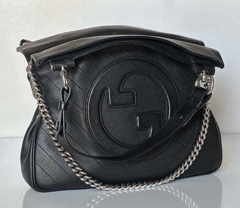 Gucci Blondie Leather Jumbo G Black Shoulder Bag Italy 751518 NWT