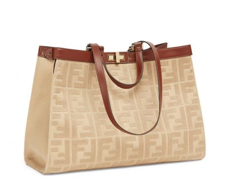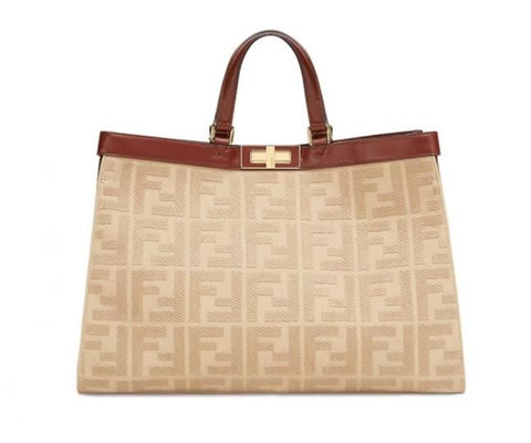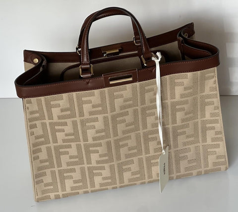Fendi FF Logo Peekaboo X-Lite Medium Canvas Beige Tote Bag 8BH374 IT NWT $2723