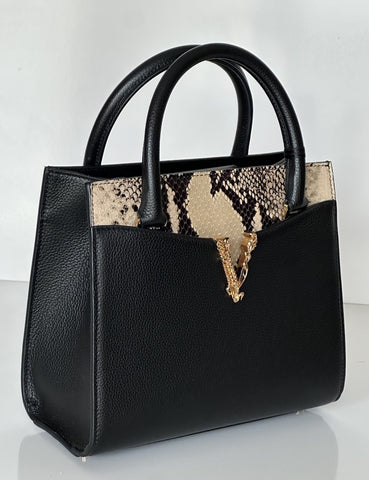 Versace Virtus Calf Leather Small Black Top Handle Bag 1005960 IT NWT $1825