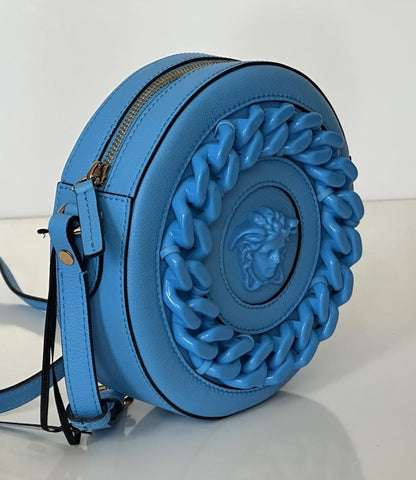 Versace Medusa Head Calf Leather Round Blue Crossbody Bag 1021602 IT NWT $1500