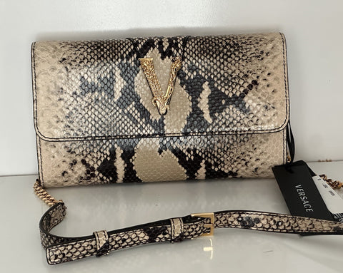 Versace Virtus Leather Brown Wallet on Chain Shoulder Bag 1006364 IT NWT $1275