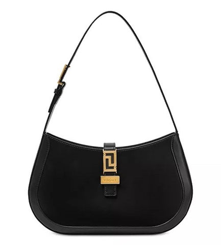 Versace La Greca Leather Black Medium Shoulder Bag 1007128 Italy NWT $2775