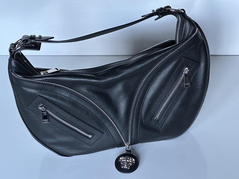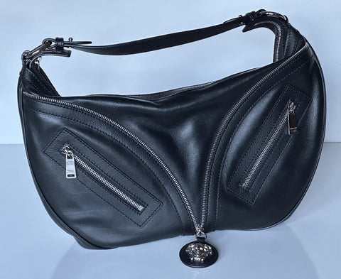 Versace Silver Medusa Head Calf Leather Medium Black Hobo Bag 1007679 NWT $2325