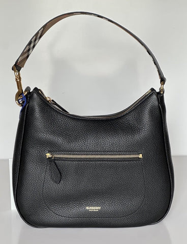 Burberry Hobo Leather Shoulder Bag Check Strap Black 81046821 Italy NWT $1750
