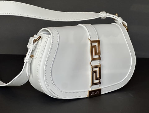 Versace La Greca Leather White Medium Shoulder Bag 1007128 Italy NWT $2775