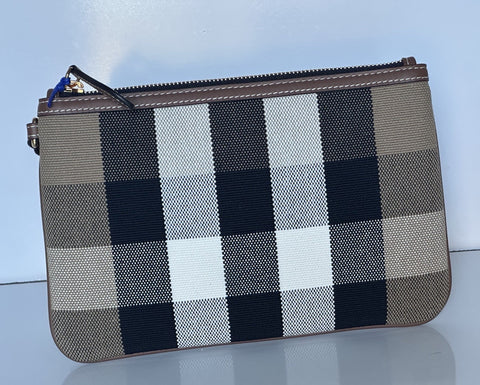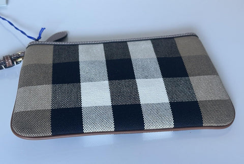 Burberry Peyton Toupe Brown IP Check Leather/Canvas Clutch 80840481 NWT $570