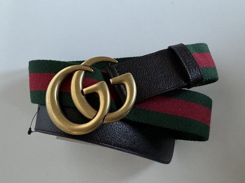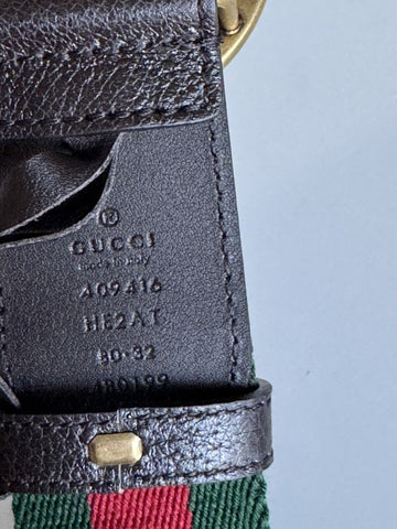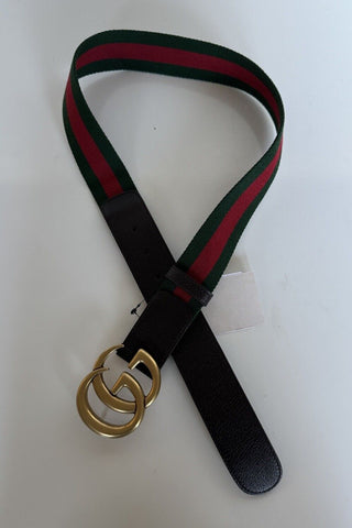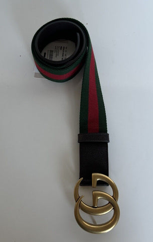 Gucci Web GG Marmont Leather/Fabric Belt Green/Red/Brown 80/32 IT 409416 NWT