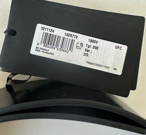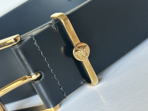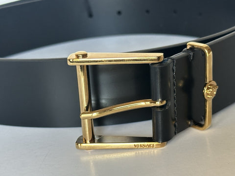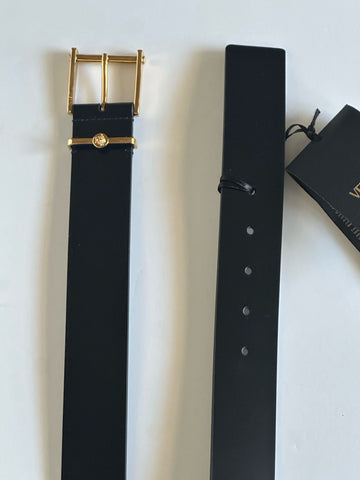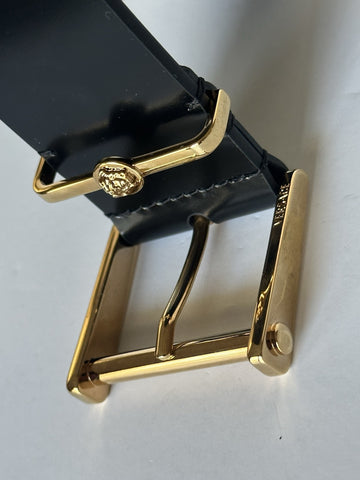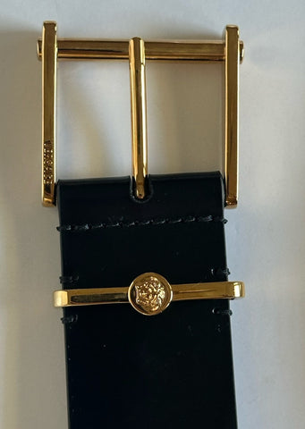 Versace Gold Buckle Black Calf Leather Belt 90 (36) Italy 1011124 NWT