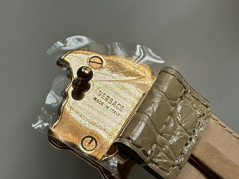 Versace Medusa-Buckle Brown/Gold Croco Pattern Leather Belt 75 (30) DCDD442 NWT