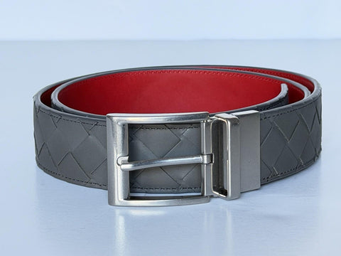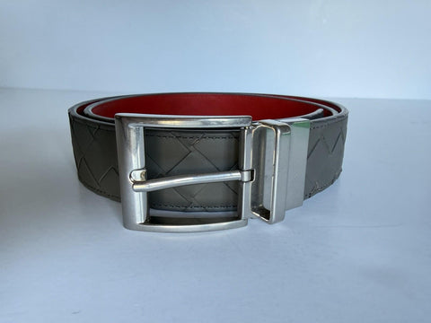 Bottega Veneta Intrecciato Reversible Gray/Red Belt 36/90 611394 Italy NWT $790