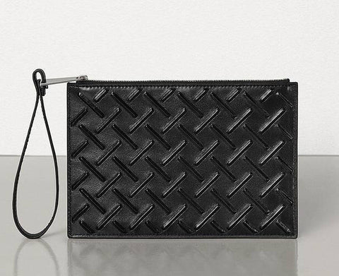 100% Authentic Guaranteed Pouch in embossed Lamb Nappa Zip top Thin wrist strap Color: Nero Hardware: Silver finish Condition: Brand New with Tag and Dust Bag Style: Multifunctional Clutch Color: Black...