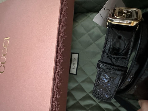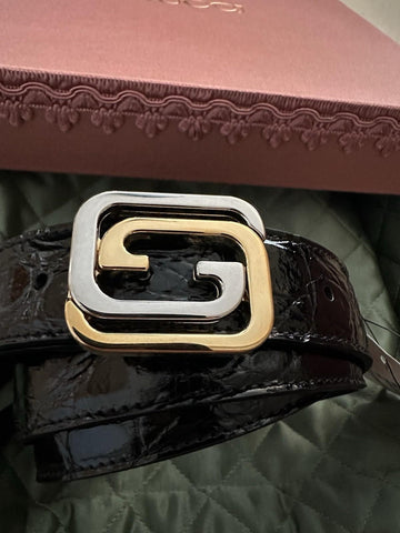 New $2250 Gucci Men Gucci Caiman Crocodile belt GG Buckle Black 85/43 715604
