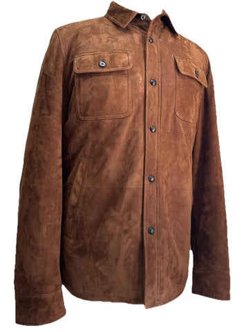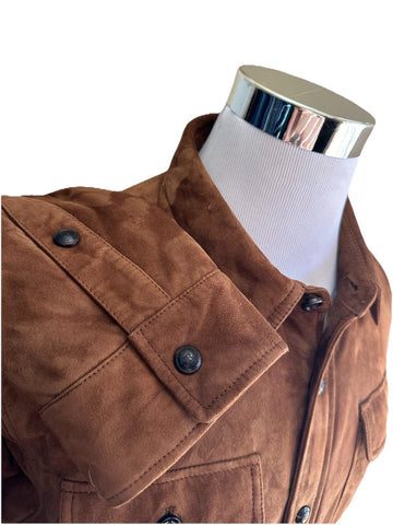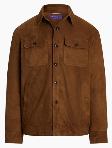 Ralph Lauren Purple Label Suede Down Shirt Jacket Brown New $3295