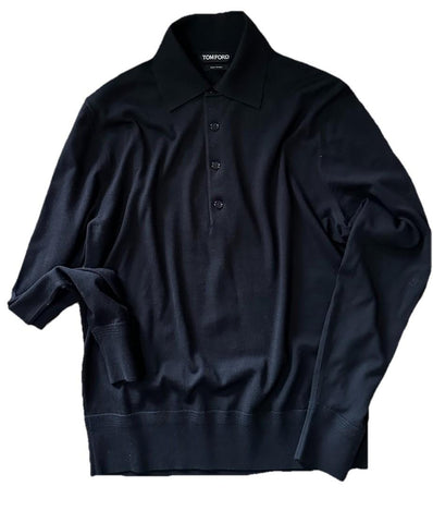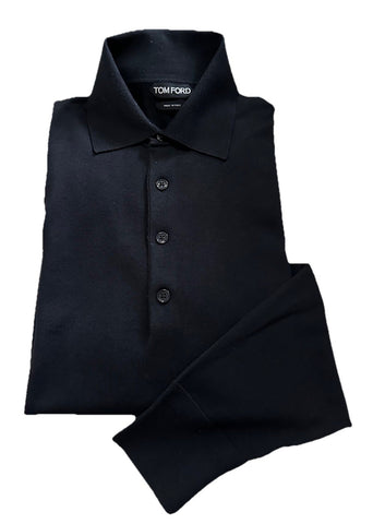 TOM FORD Long Sleeve knit polo Wool sweater Black 50 Eu/M Italy