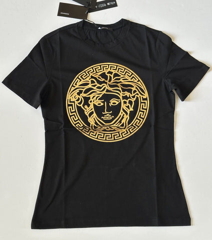 Versace Women's Gold Medusa Black Cotton Jersey T-Shirt 6 (40) A89559S NWT $475