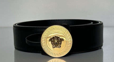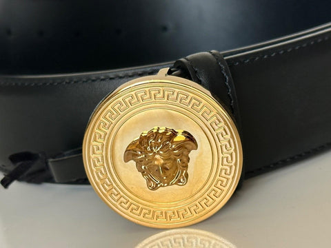 Versace Gold Medusa-Buckle Black Leather Belt 90 (36) Italy 1006276 NWOT $600