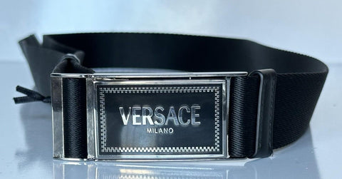 Versace Milano Buckle Ribbon/Leather Black Adjustable Belt 1016469 NWT $450