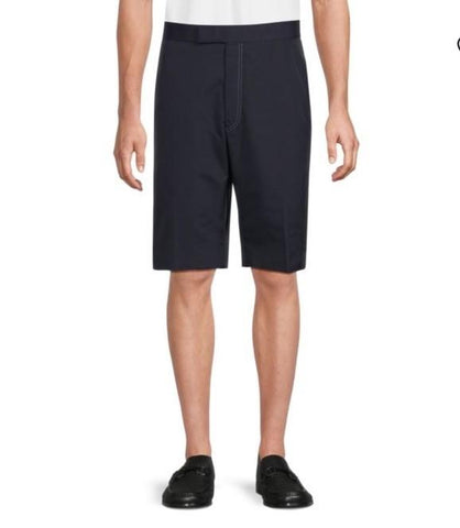 This product is a pair of NWT Thom Browne knee-length shorts in navy blue, designed for men in size 3 (52 Eu). Made in Italy, the shorts are crafted from...