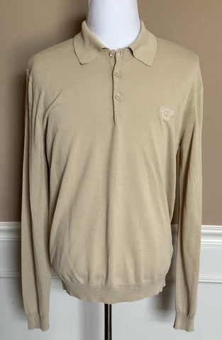 Versace Medusa Lightweight Light Sand Knit Polo Sweater 54 Euro 1019329
