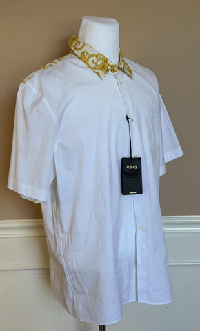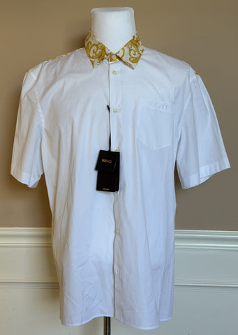 Versace Graphic Print Short Sleeve Shirt White&Gold 58 Euro (XL-2XL) 1019157 NWT