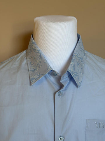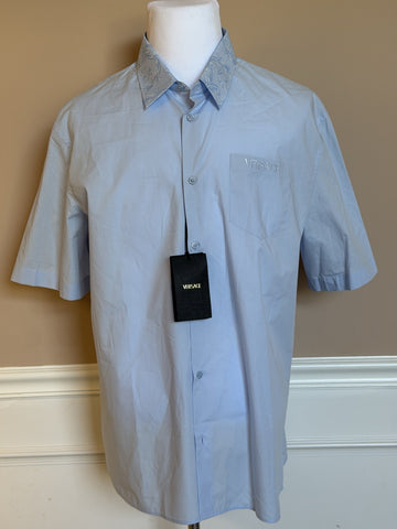 Versace Graphic Print Short Sleeve Shirt Blue 58 Euro (3XL-4XL) 1019157 NWT