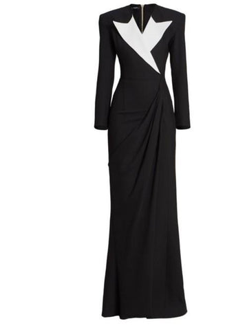 New $6500 BALMAIN Two-Tone Tuxedo Gown Dres Black/White 40 ( 8 ) Italy
