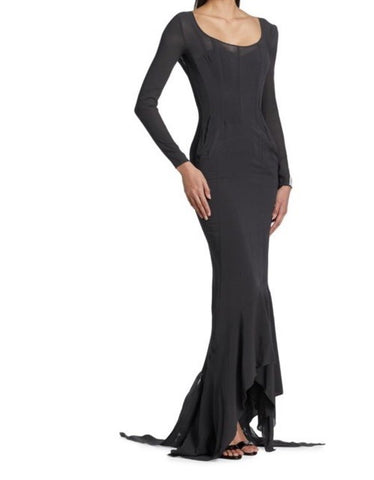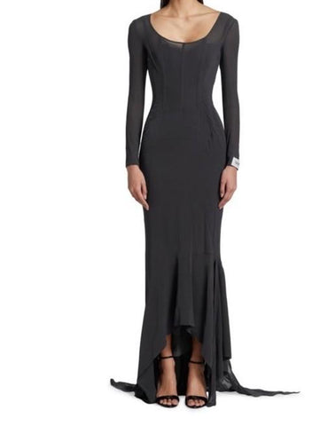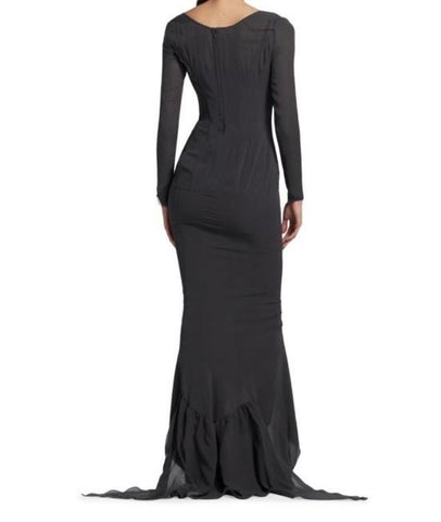 New $5995 DOLCE&GABBANA Sheer Long-Sleeve Gown Dress Gray 40 ( 6 ) Italy