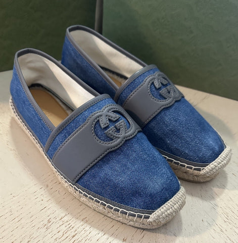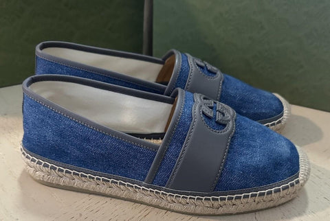 New Gucci Men GG Logo Denim Espadrille Shoes Blue 10 US/9 UK 777365