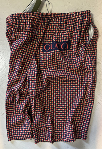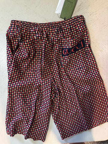NWT $1280 Gucci Men Drawstring Gucci Print Short Pants Blue/Red/Mul 40 US/56 Eu