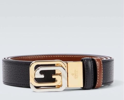 New Gucci Men Leather Reversible belt GG Buckle Black/Brown 75/30 715603