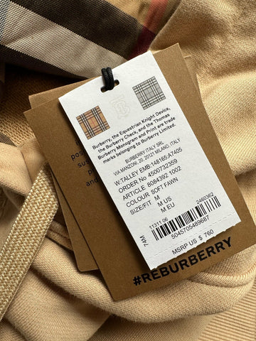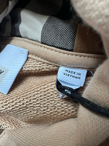 Burberry Talley Logo Checked Sweatshirt with Hoodie Soft Fawn M 8084392 NWT $760