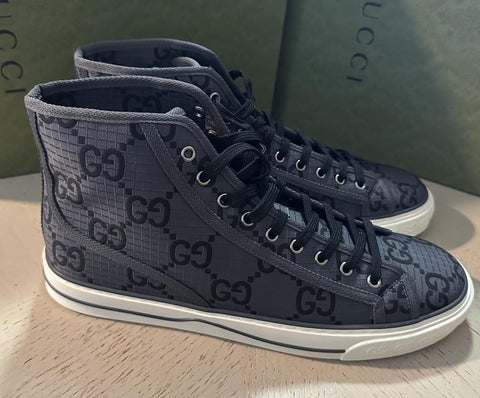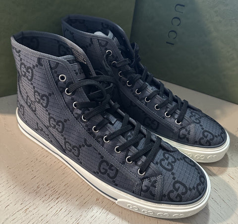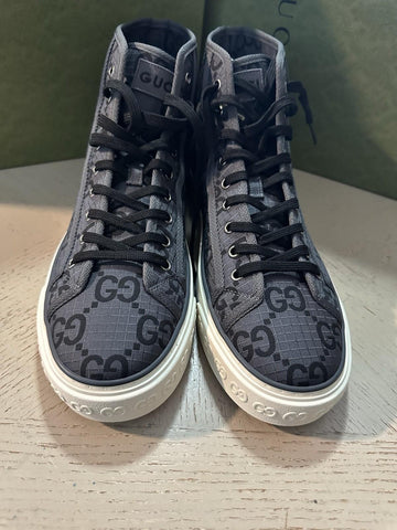 New Gucci Men GG Monogram Canvas High-top Sneakers Gray/Black 12.5 US/12 UK