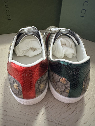 New Gucci Men GG Logo Bee Logo Canvas Leather Sneakers Beige 14.5 US/14 UK