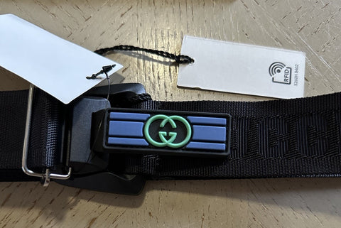New $920 Gucci Mens Leather Memorable Buckle Belt Blue/Brown 100/40 709954