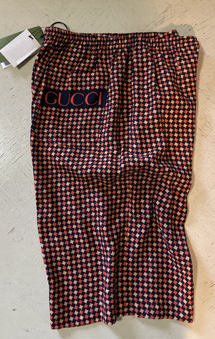 NWT $1280 Gucci Men Drawstring Gucci Print Short Pants Blue/Red/Mul 36 US/52 Eu