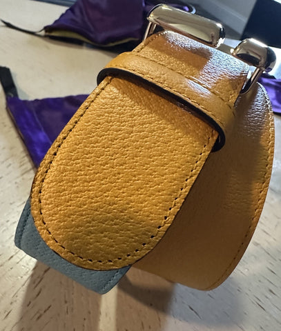 onlyluxuryclothingDesigner ClothingMeasurements & InformationSize100/40ConditionBrand new with tagMade inItaly Waist36-40Width1.5 inchColor Blue/Yellow MaterialLeather © by onlyluxuryclothing