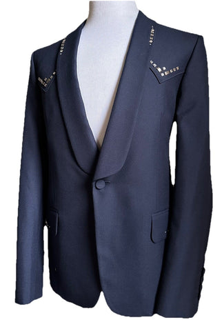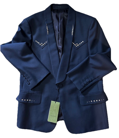 Gucci Men Wool Twill Jacket With Crystal Embroidery Navy 42R US/52R Eu New $3900