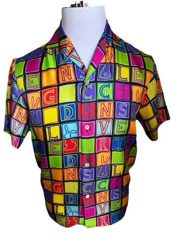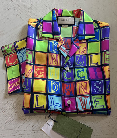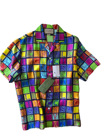 New $1400 Gucci Men’s Short Sleeve Silk Shirt Black/Red/yellow/MC Size 44/S