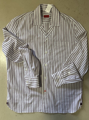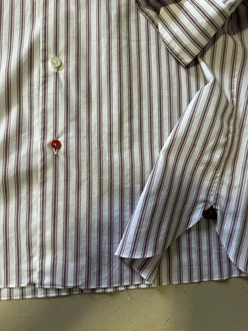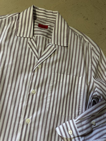 New $525 Isaia Men’s Shirt White Red Striped Size M