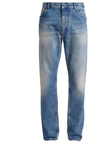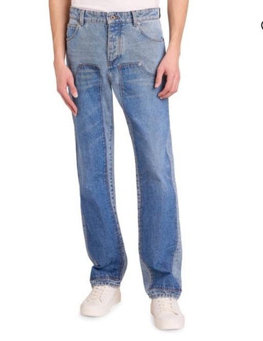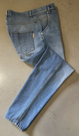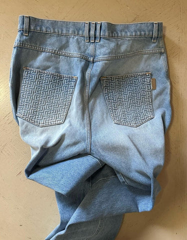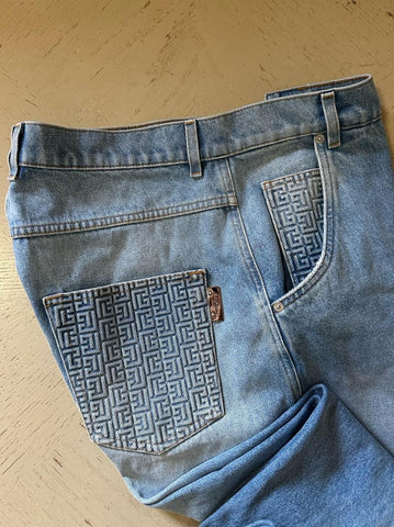 NWT $1350 Balmain Men Monogram Straight-Leg Jeans Pants Blue 32 US