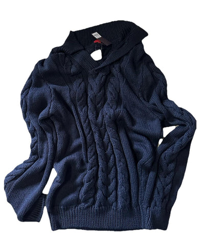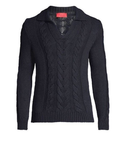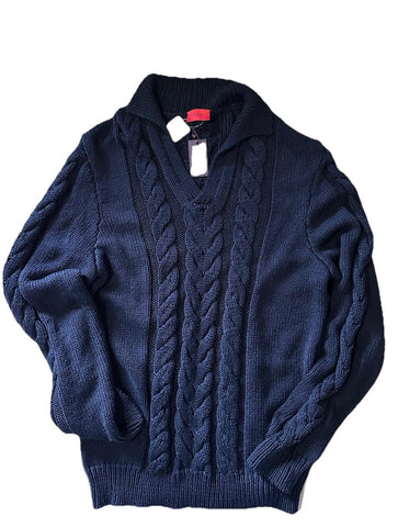 New $1795 Isaia Men Silk & Cotton-Blend Cable-Knit Polo Sweater Navy Size M