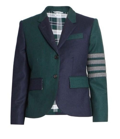 New $2690 Thom Browne Women Funmix Colorblocked Wool Sport Jacket 46/10 Italy