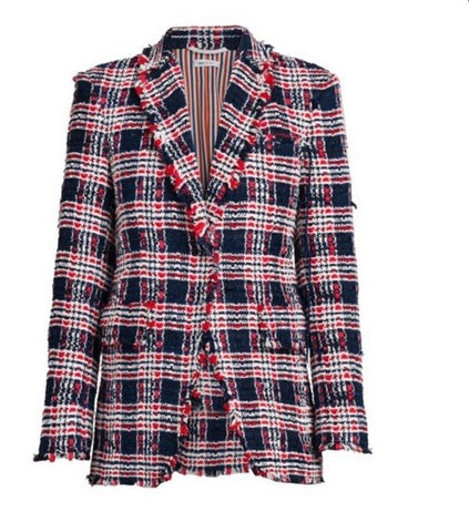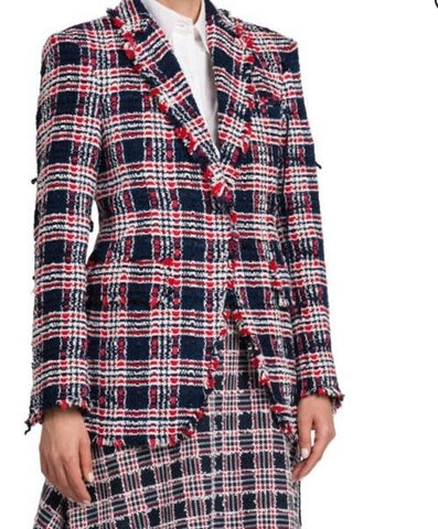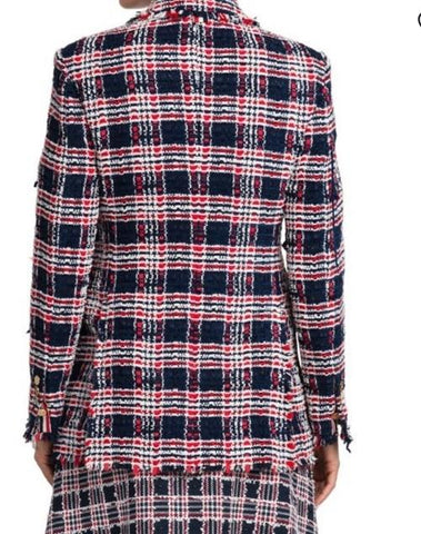 New $4900 Thom Browne Women Plaid Tweed Jacket RED WHITE BLUE 42/6 Italy